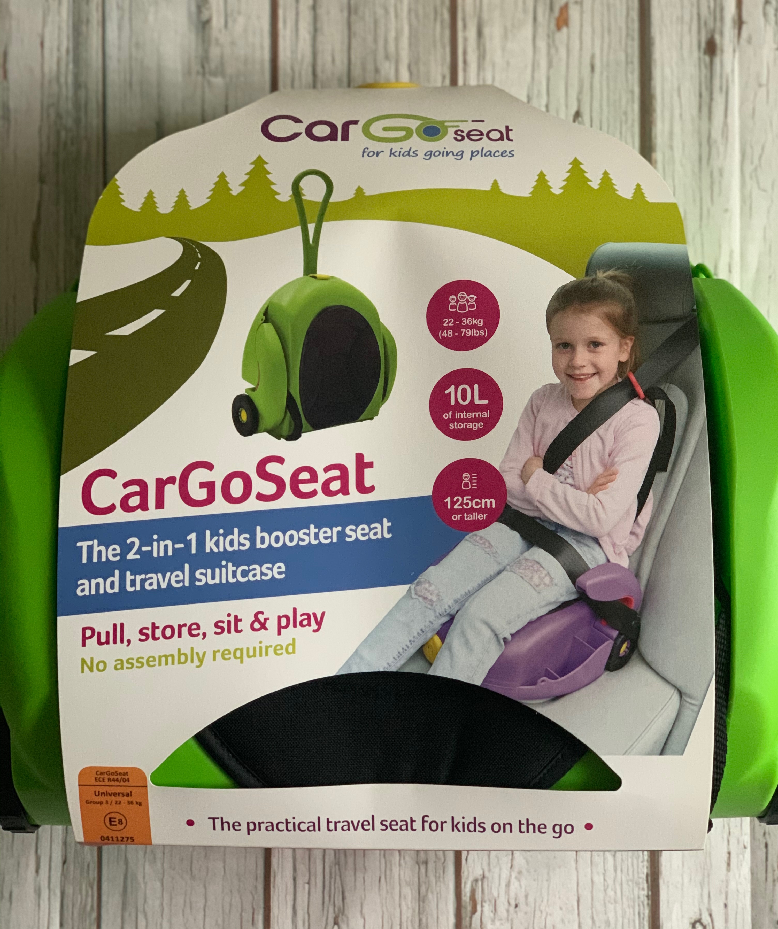 The CarGoSeat is a booster car seat for children weighing 22kg to 36kg and a height of 125cm or taller 125cm (check latest guidelines). The booster meets the current UK & EU safety standard ECE R44/04 regulation and has been rigorously crash tested to meet exceed UK safety standards.