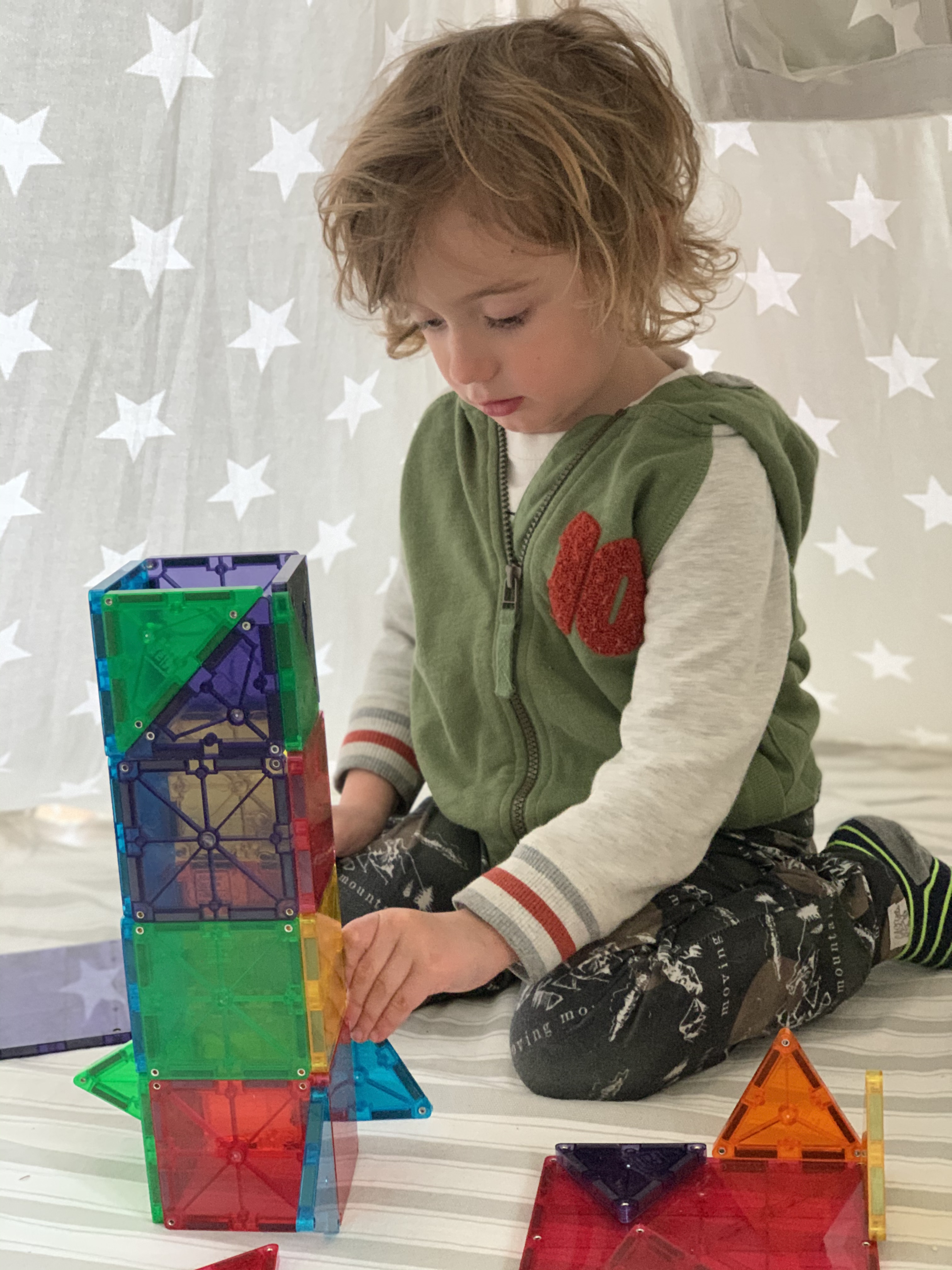 The Magna-Tiles have such great learning potential at different ages, in particular for STEM learning. From fine motor skills, colours and shape recognition, to counting, pattern recognition, symmetry, problem solving, magnetic principles and design and build.
