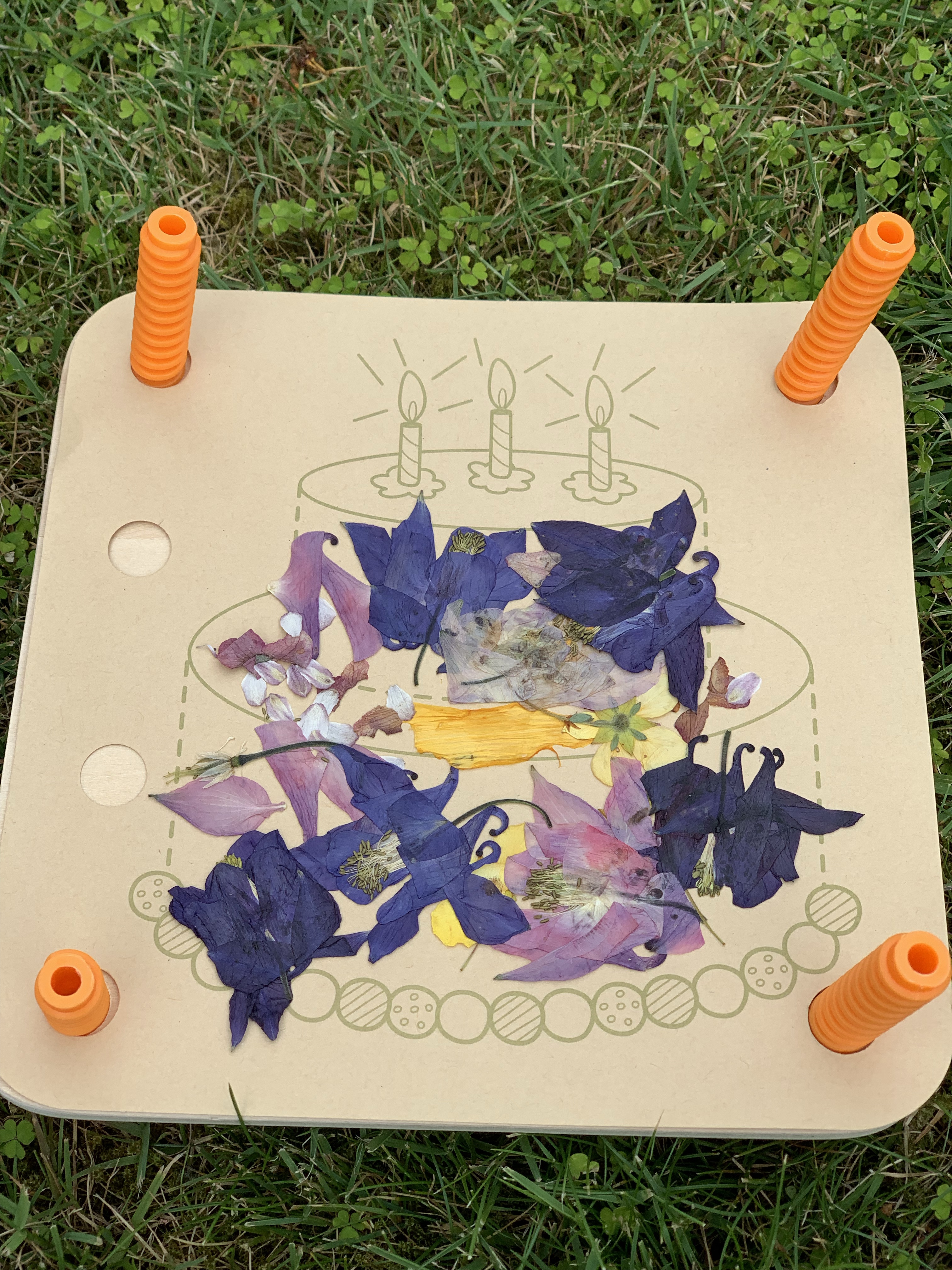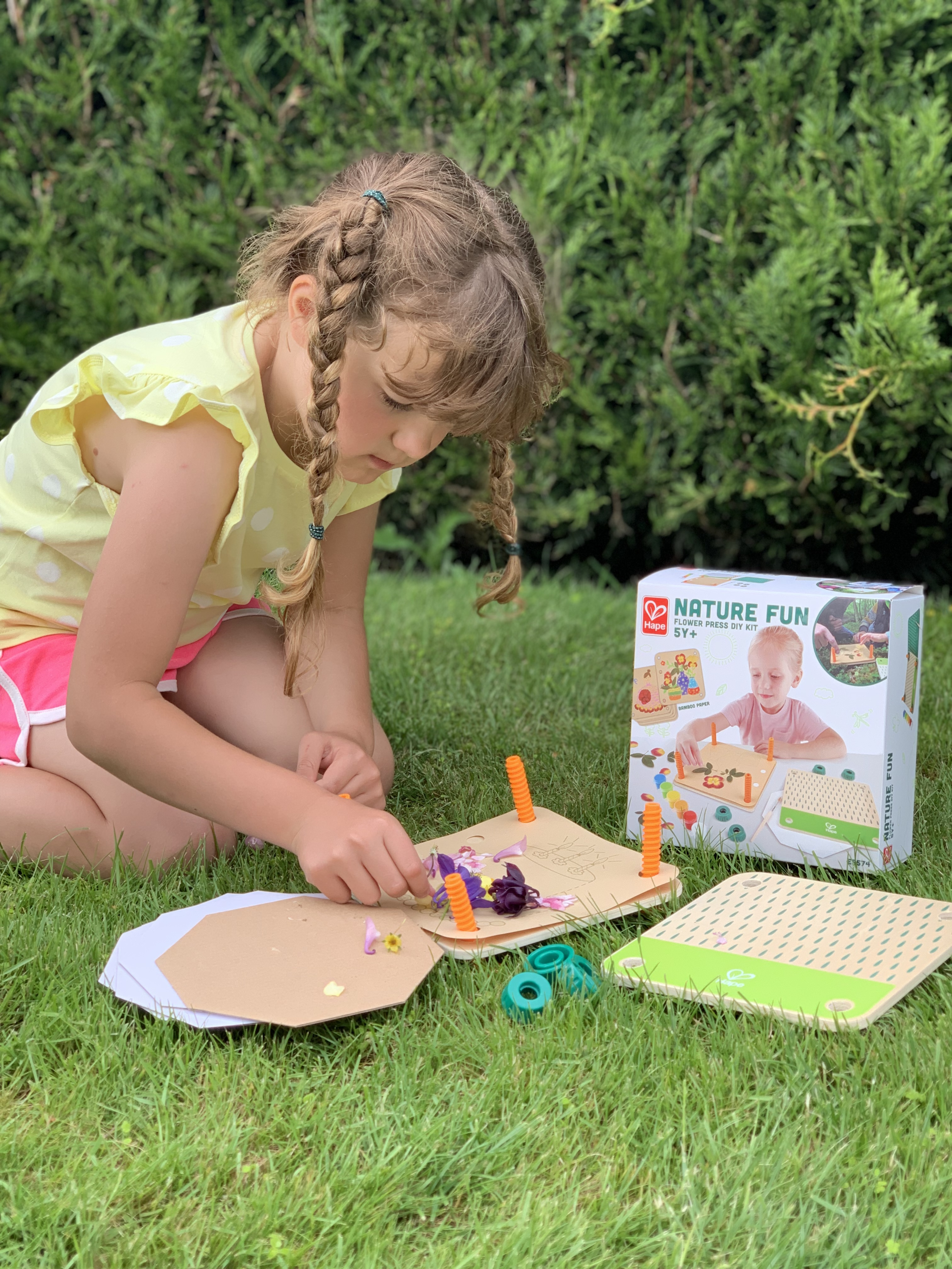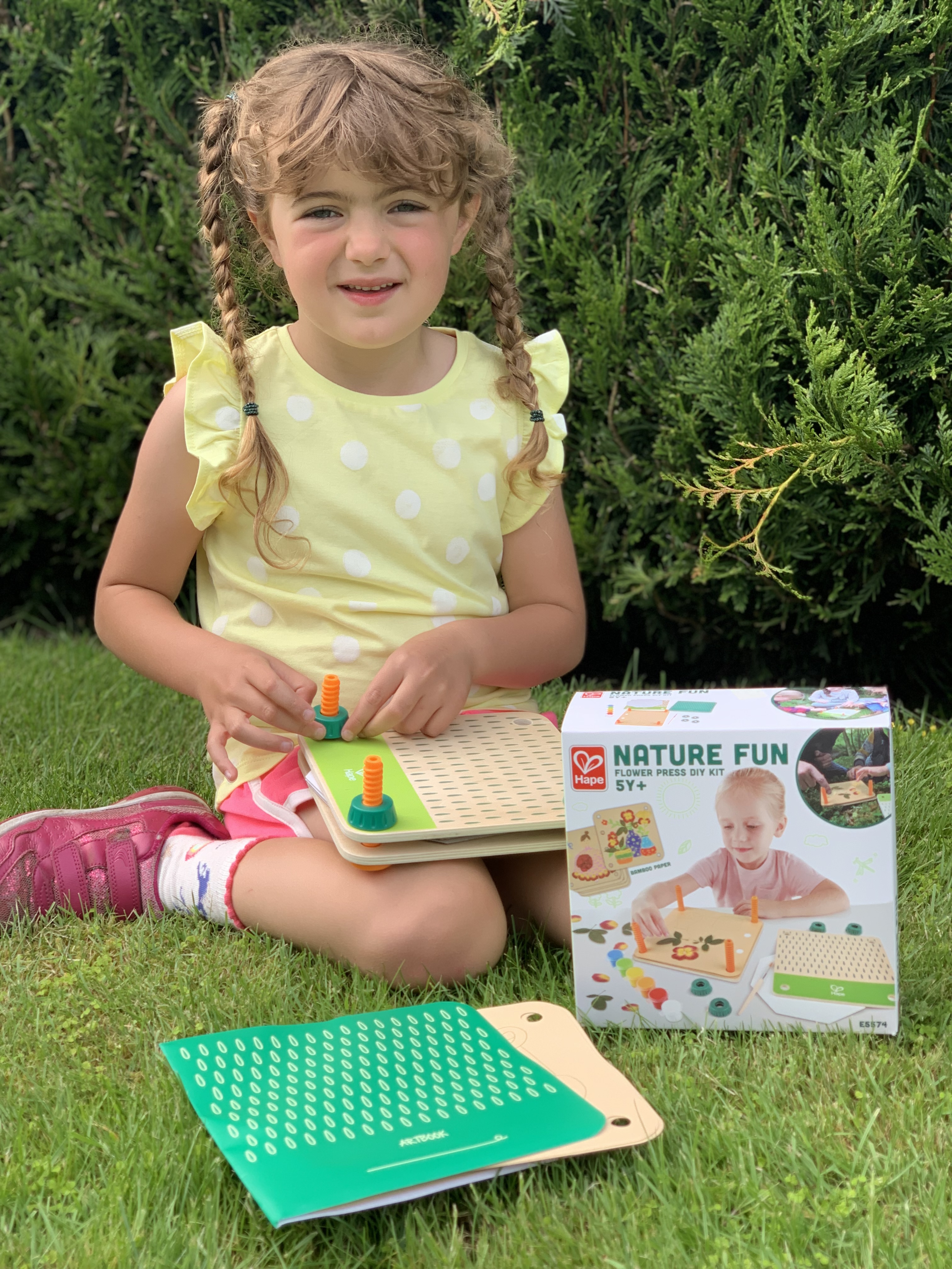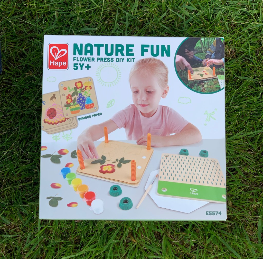 My daughter is loving the Flower Press Kit (she is always picking my flowers!). The kit comes with the main press and also with some pre-printed pictures onto which you can press the flowers to make a lovely picture. There are cardboard pieces to layer on top of your flower picture for pressing. There are even paints included so you paint extra colour on your floral creation!