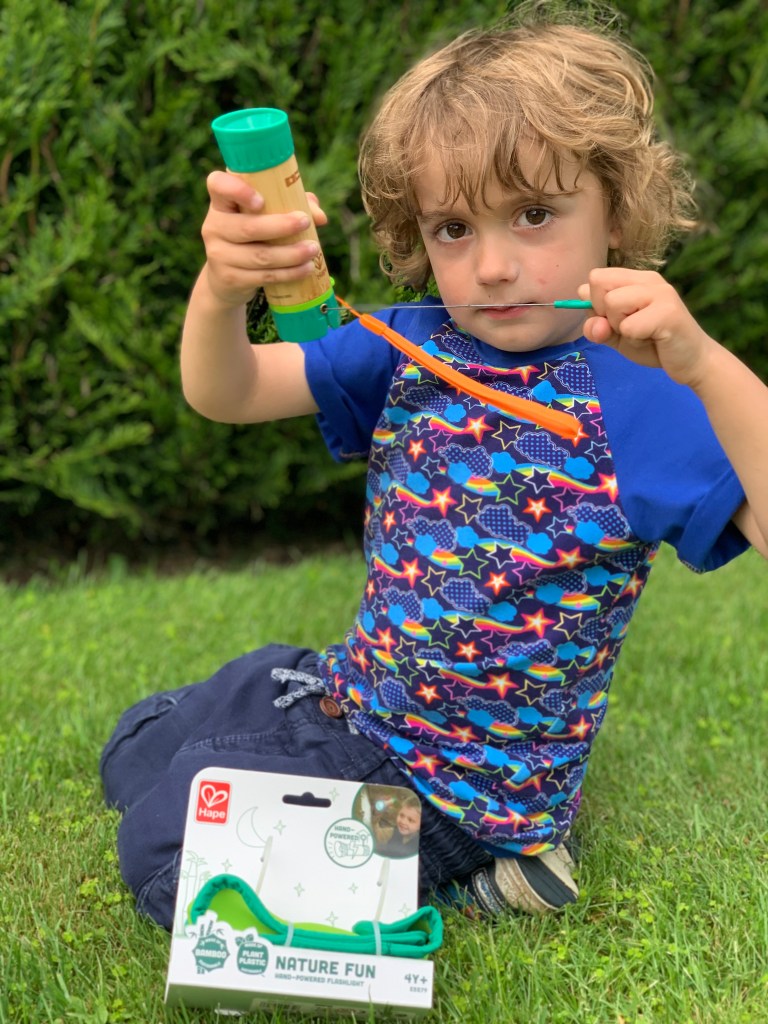 The Hand-Powered Flashlight means no more batteries! Our kids love a torch and so this is ideal as it great to use and no problem if it is left on!