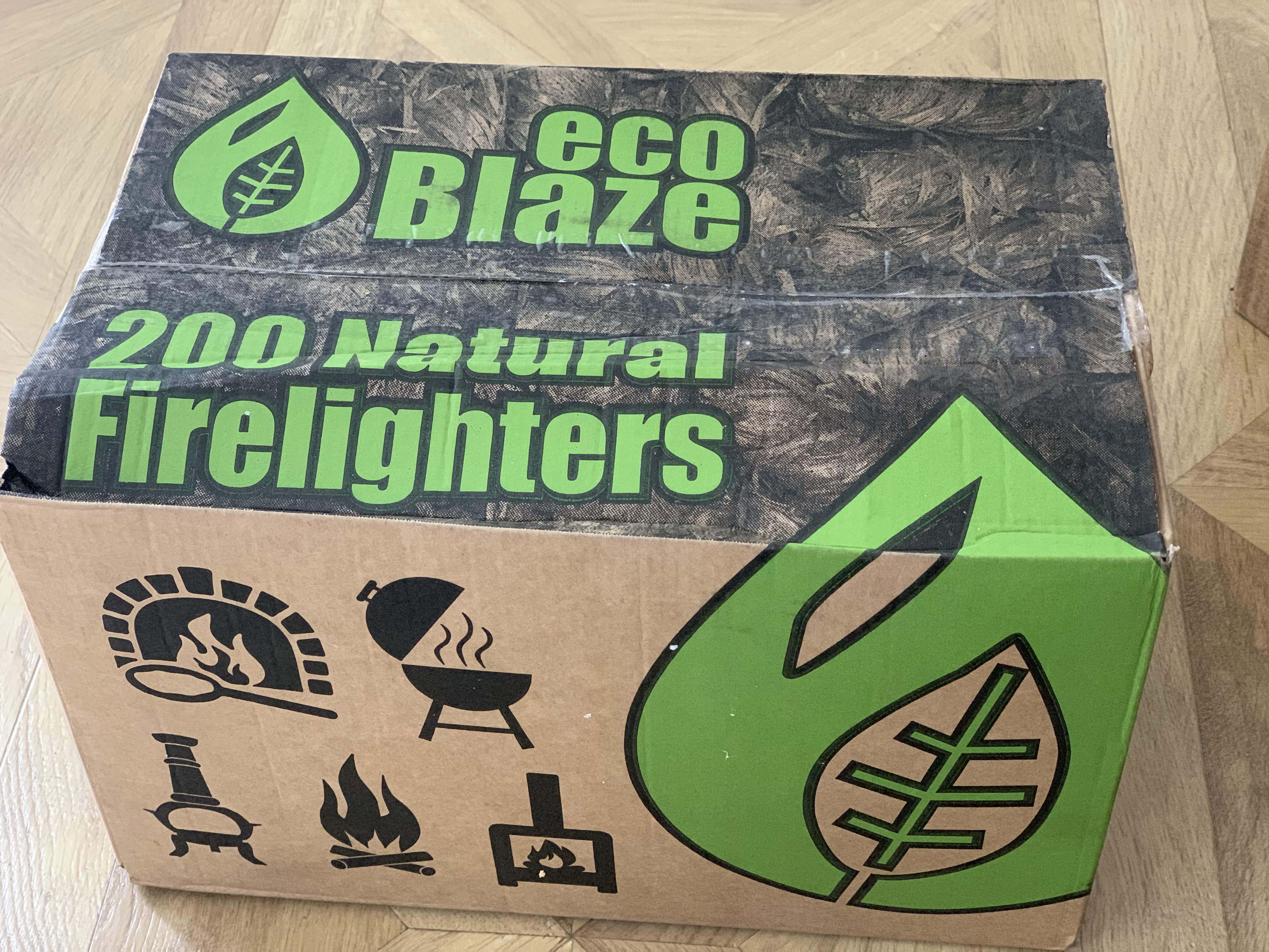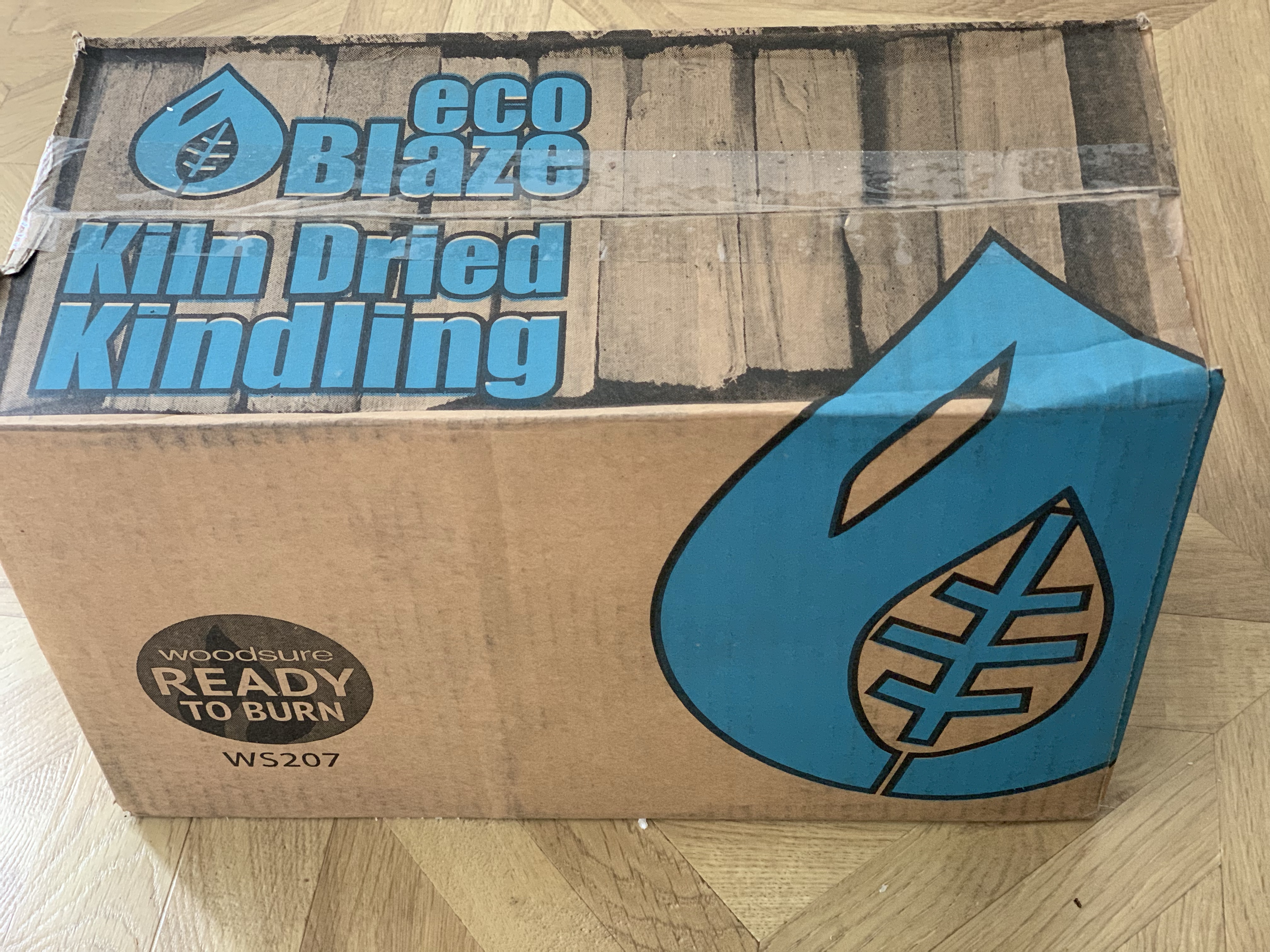 The kindling is kiln-dried off cuts and you don’t need much to get a fire going, the box is packed with pieces and is great value!