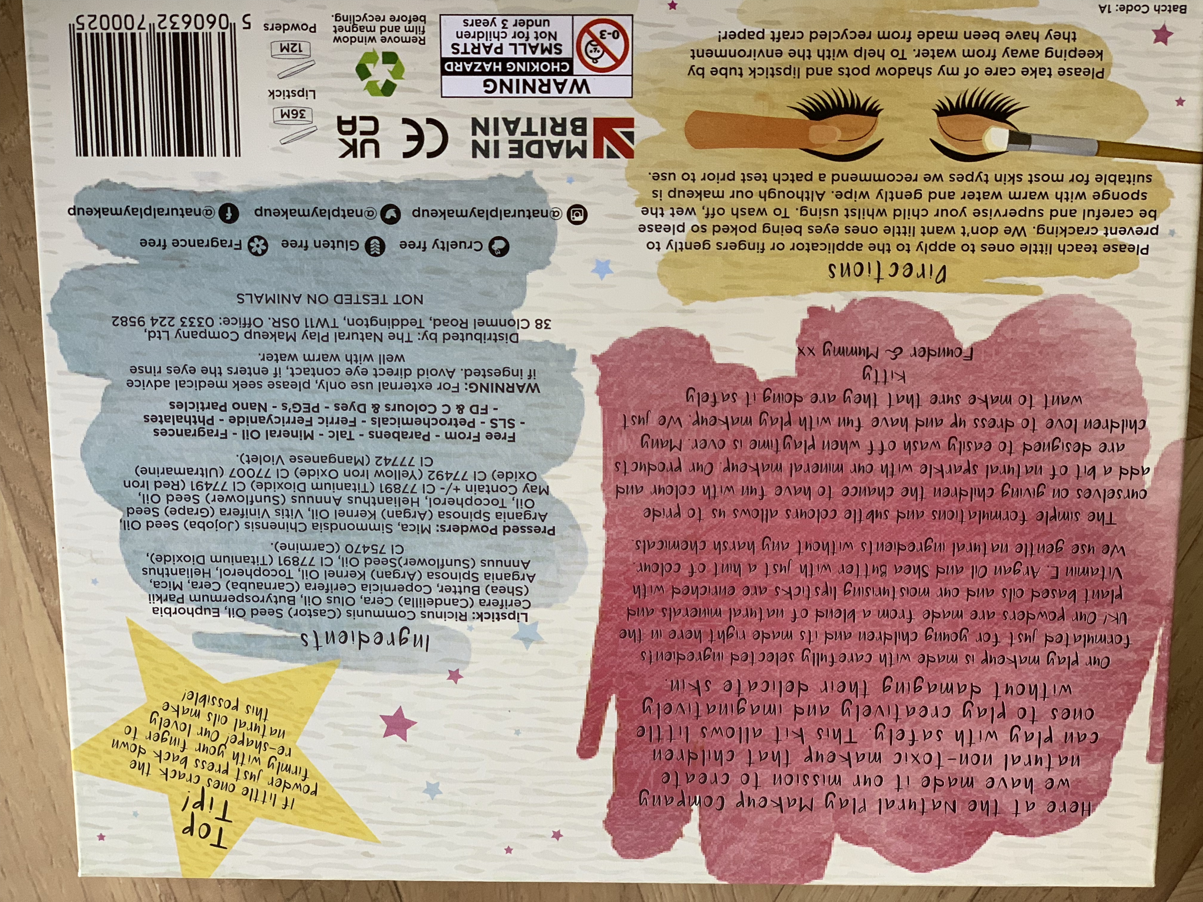 This is a lovely way for children to play with make up as there comes a time when they are interested and fancy trying it themselves. I am wary of the children not growing up too fast and using make up but it is inevitable they will want to try and play with it, and this is a lovely small business that is all about the sparkle, fun and no chemical nasties!