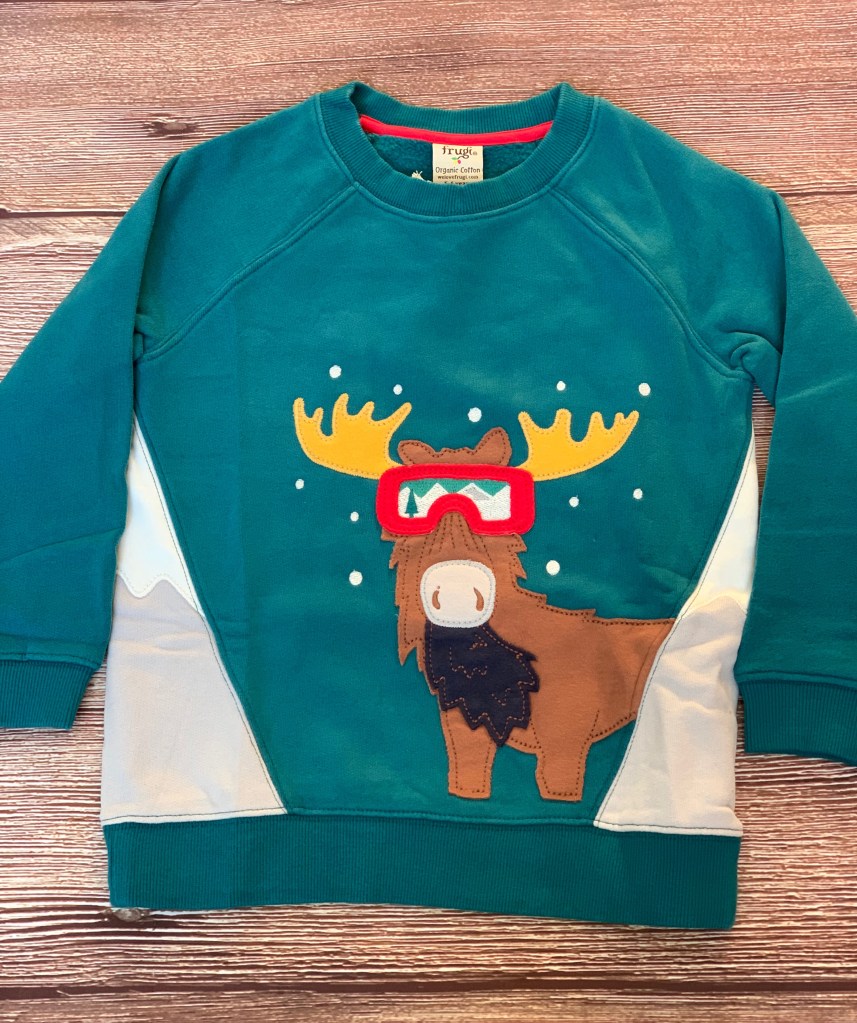 Christmas outfits don’t need to be all red and green but can be full of colour, awesome prints and fun characters! Frugi’s Christmas collection includes mountain lodges, narwhals, moose, Frugi tractors, lynx, owls, whales….