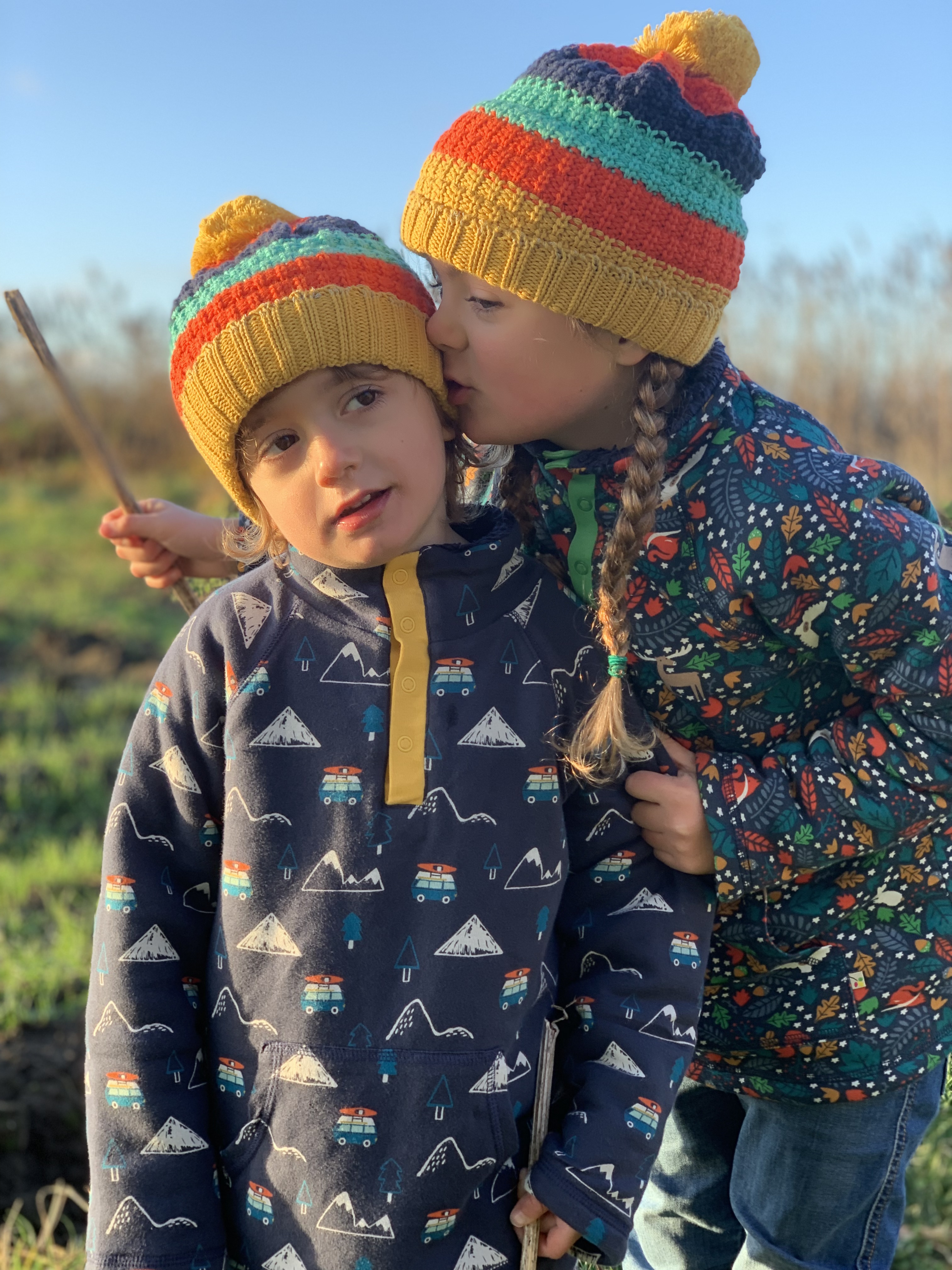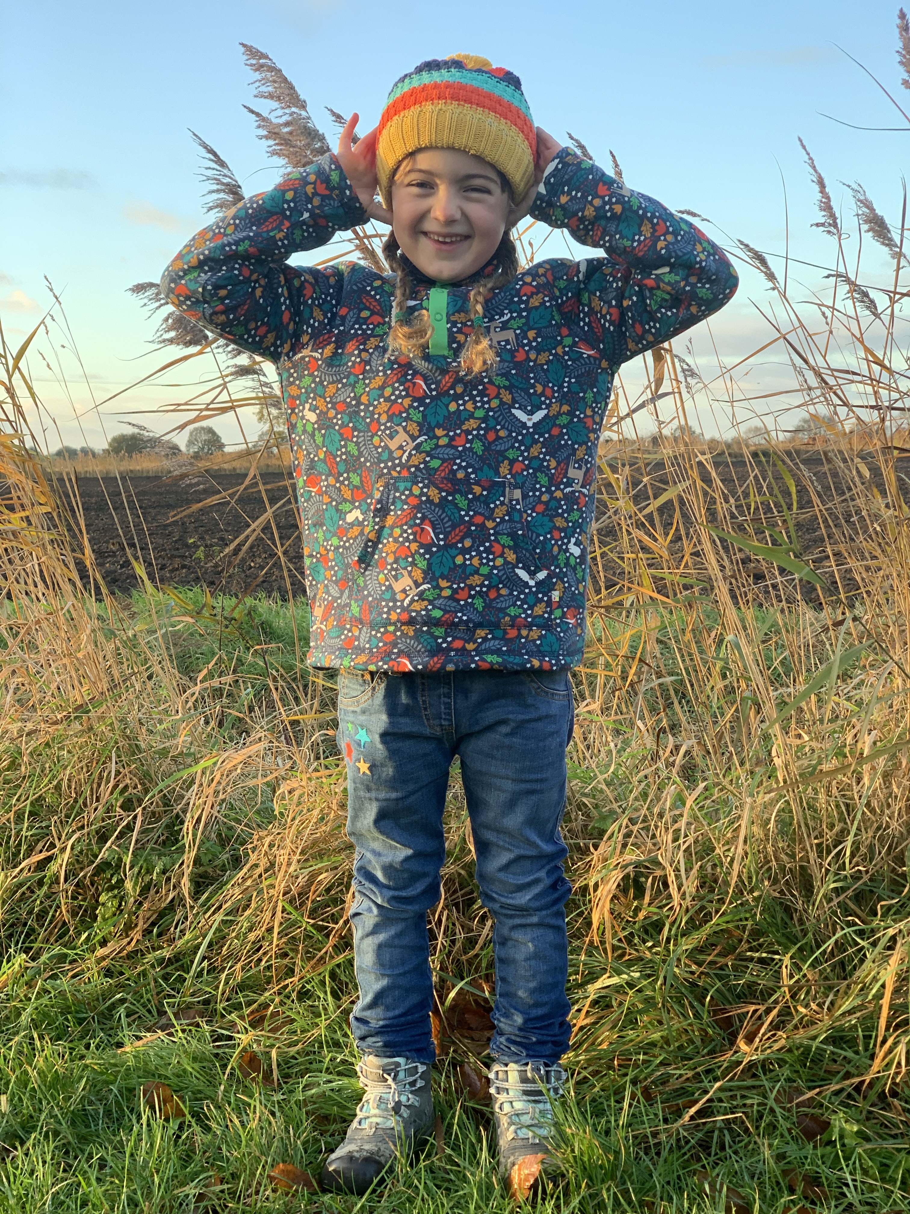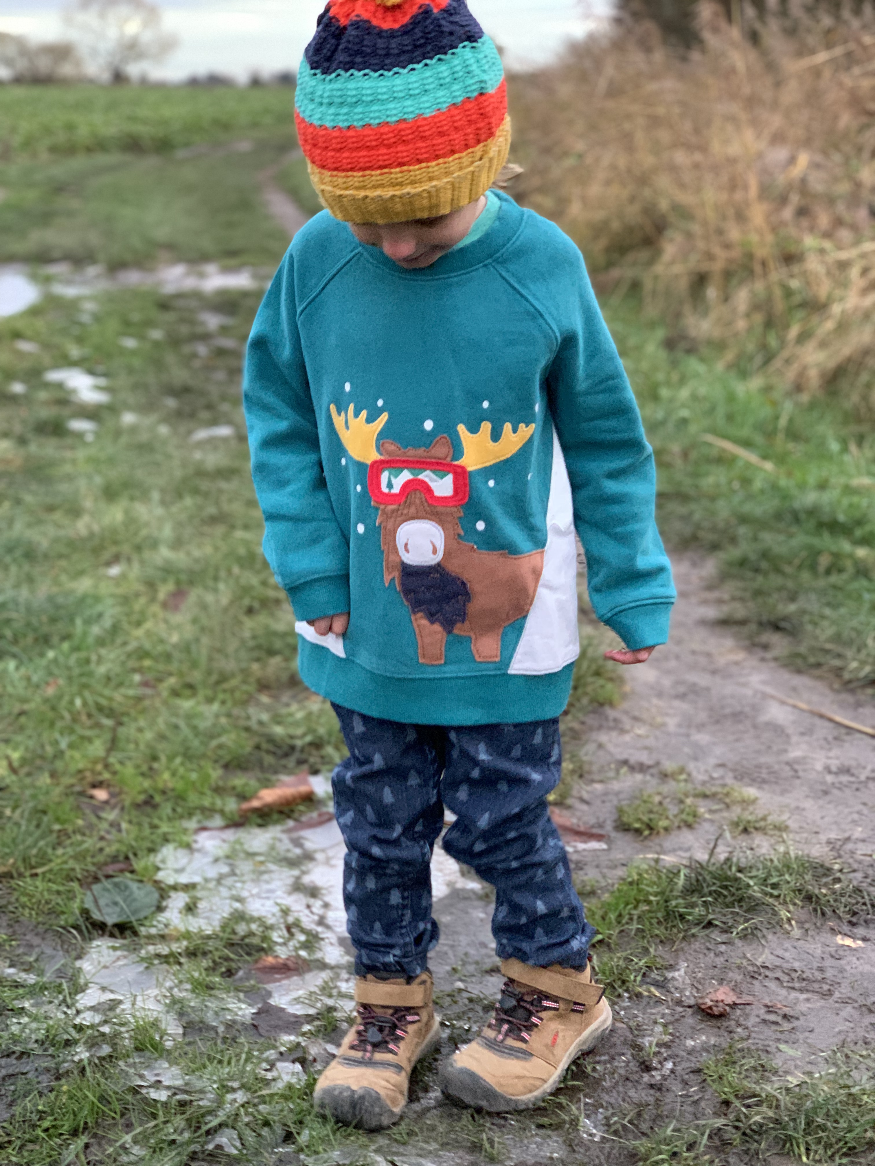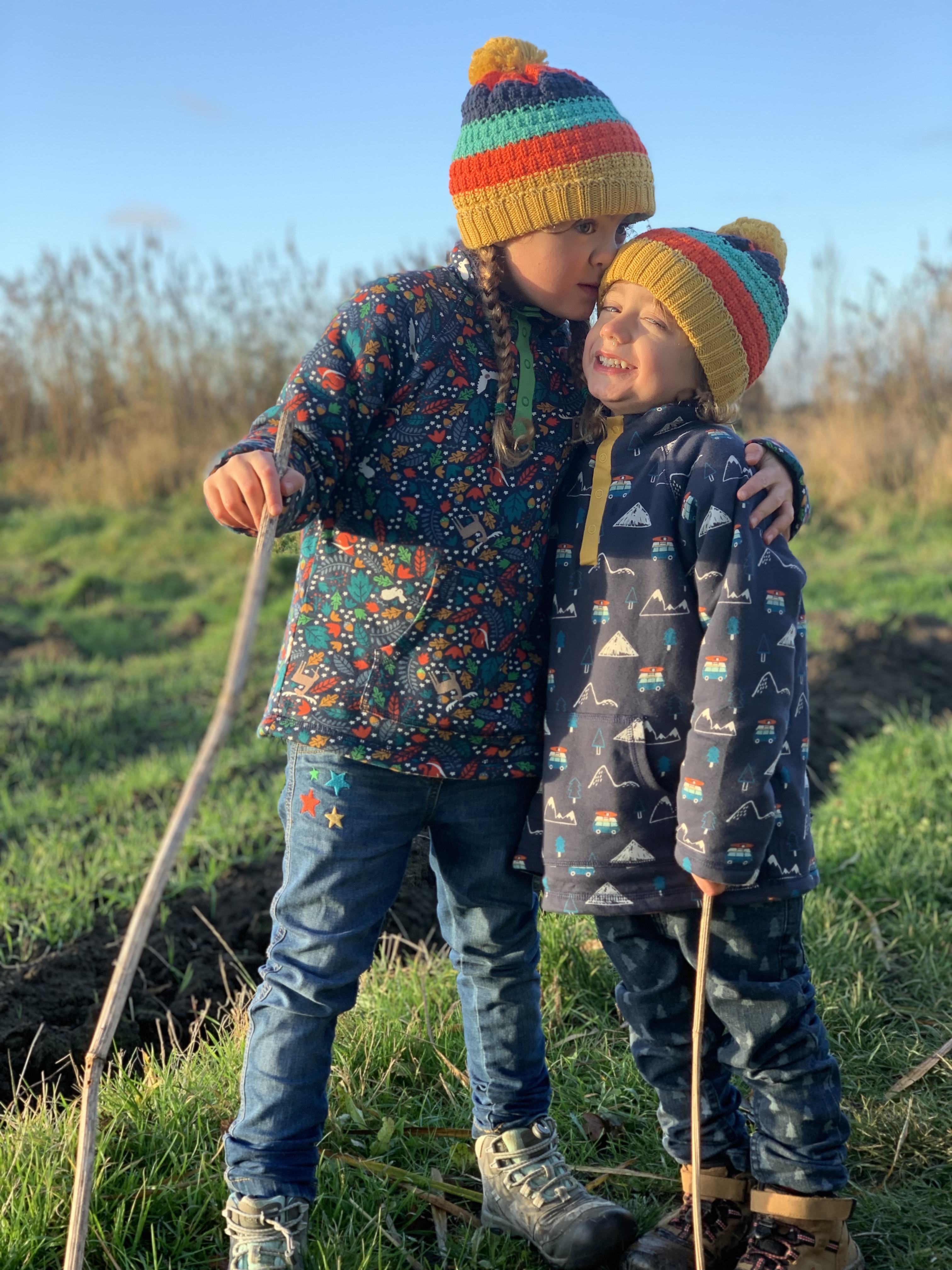 The jeans are made from 98% GOTS certified organic cotton denim and 2% stretchy elastase, they are lovely and soft and move as the little ones move-they are not stiff and uncomfortable like other denim jeans can be! The softness also makes them warm to wear too which is perfect for chilly Winter adventures!