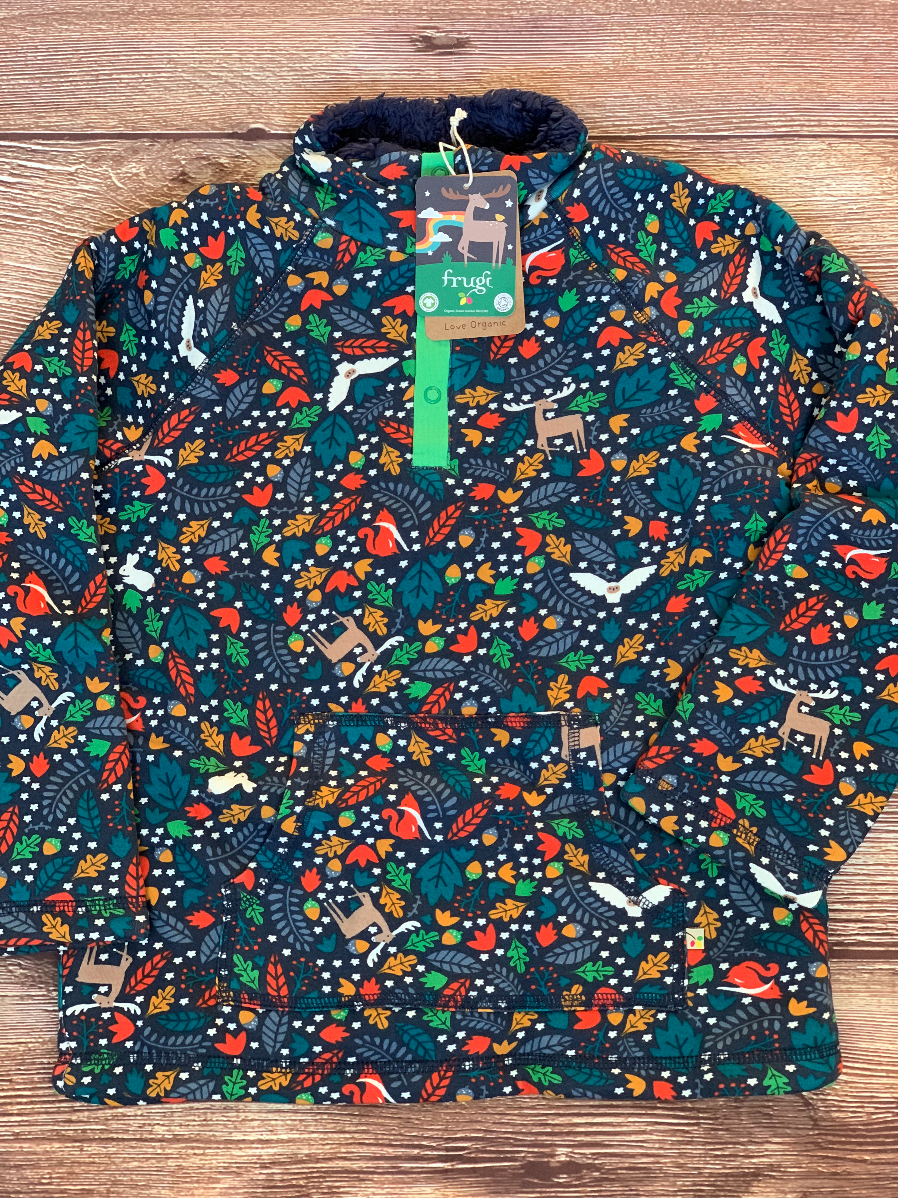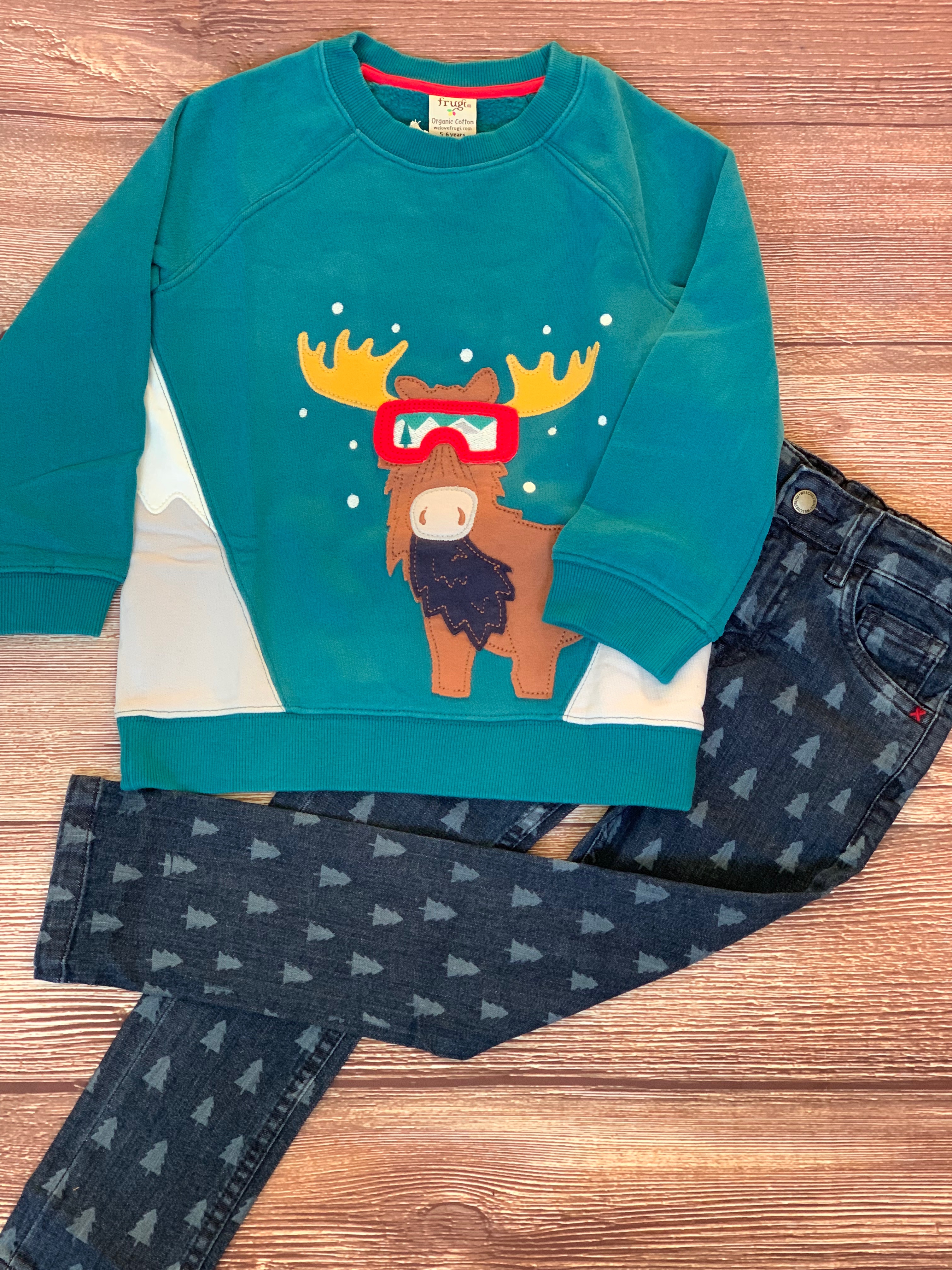 The prints of the Frugi fleeces match other items in the Frugi Christmas collection as we all love a bit of matching! This “In The Wild” print looks great with the Jordan Printed jeans.