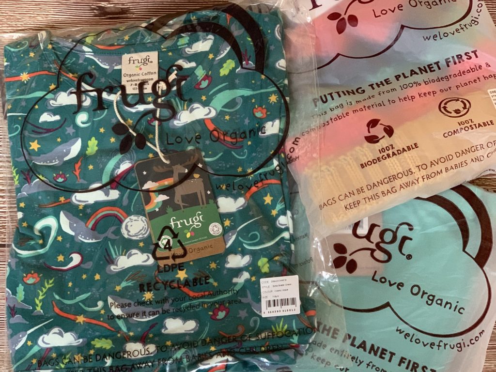 The joy of a Frugi order comes as soon as the parcel arrives in its brown paper parcel and biodegradable wrappers-ours get put into the compost bins to provide food for next years veg patch!