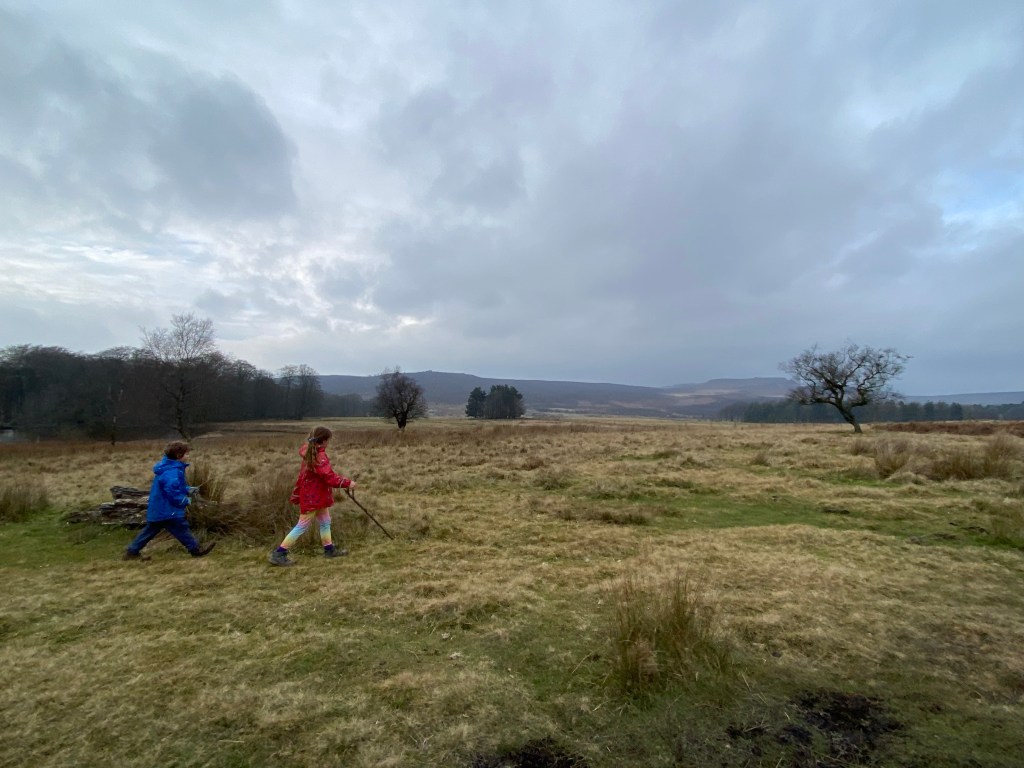 Follow the grassy paths forwards across the Longshaw estate, you will meet a track where you turn left and then a little further take another grassy path off to the right that takes you back to the pond. There are lots of paths and tracks through the estate that you can take so can’t really go wrong!