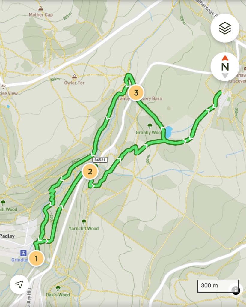 Food – National Trust cafe at Longshaw, ice cream van on the B6521 and the station cafe at Grindleford Station Cafe (don’t forget your cash and great stopping place half way round!)