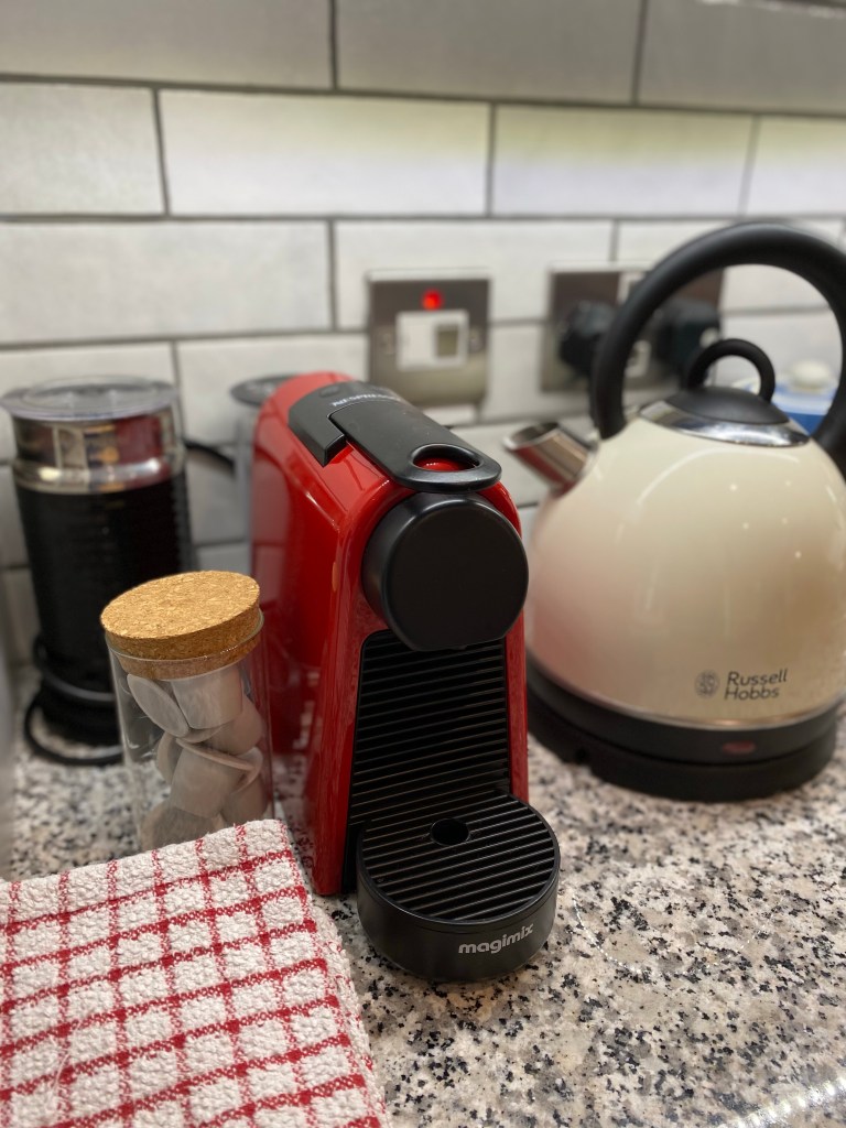 The kitchen is fully equipped, there is even a Nespresso coffee machine and milk frother. Treworgey supply some of the veeery nice coffee pods and there are more available in the Info Room. The Mr particularly enjoyed the milk frother for his coffee!
