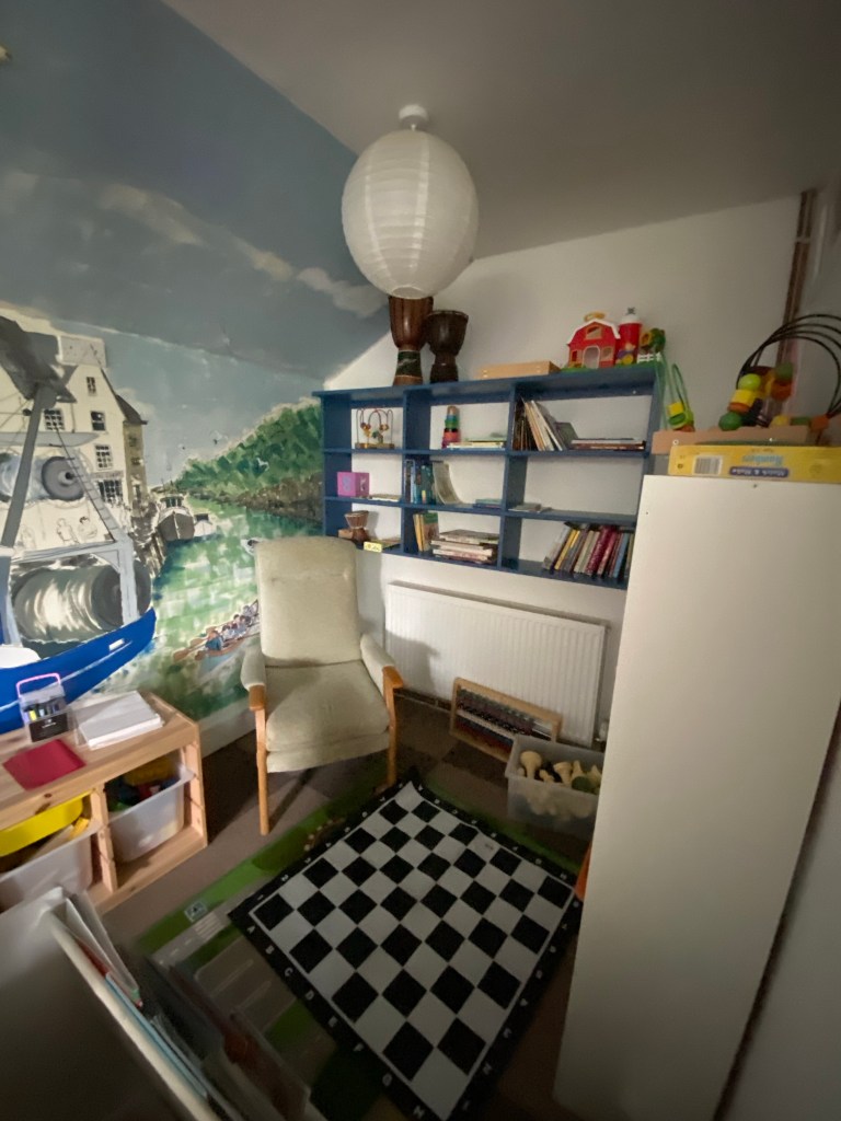 There are books to read and share, a big chess set, an easel, Lego, car mats, ride ons, everything that you can think of for children (and big kids!) to enjoy playing with!