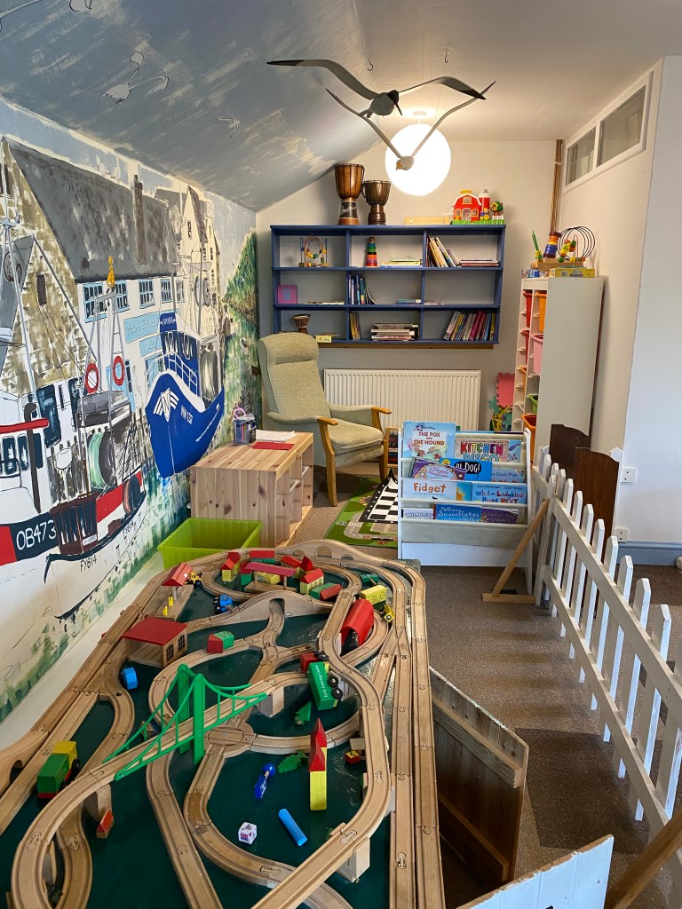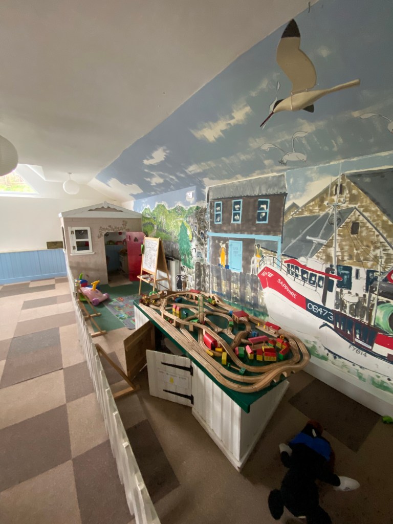 The play room is absolutely bursting with activities to play with under the gaze of the stunning hand painted Looe mural!