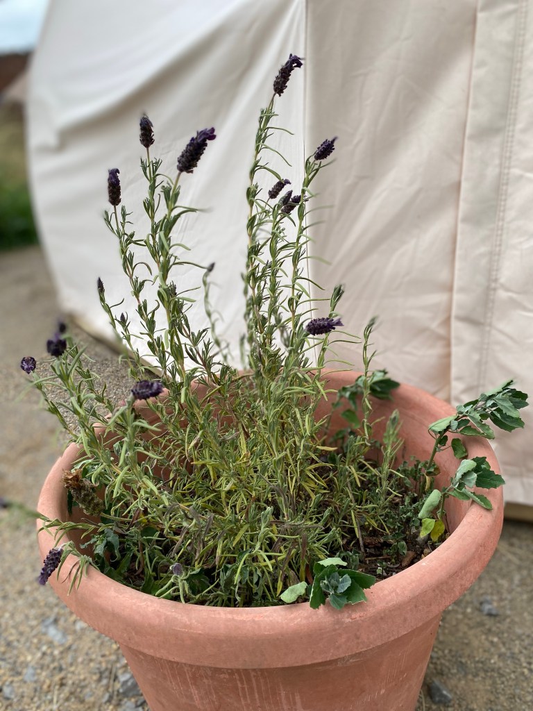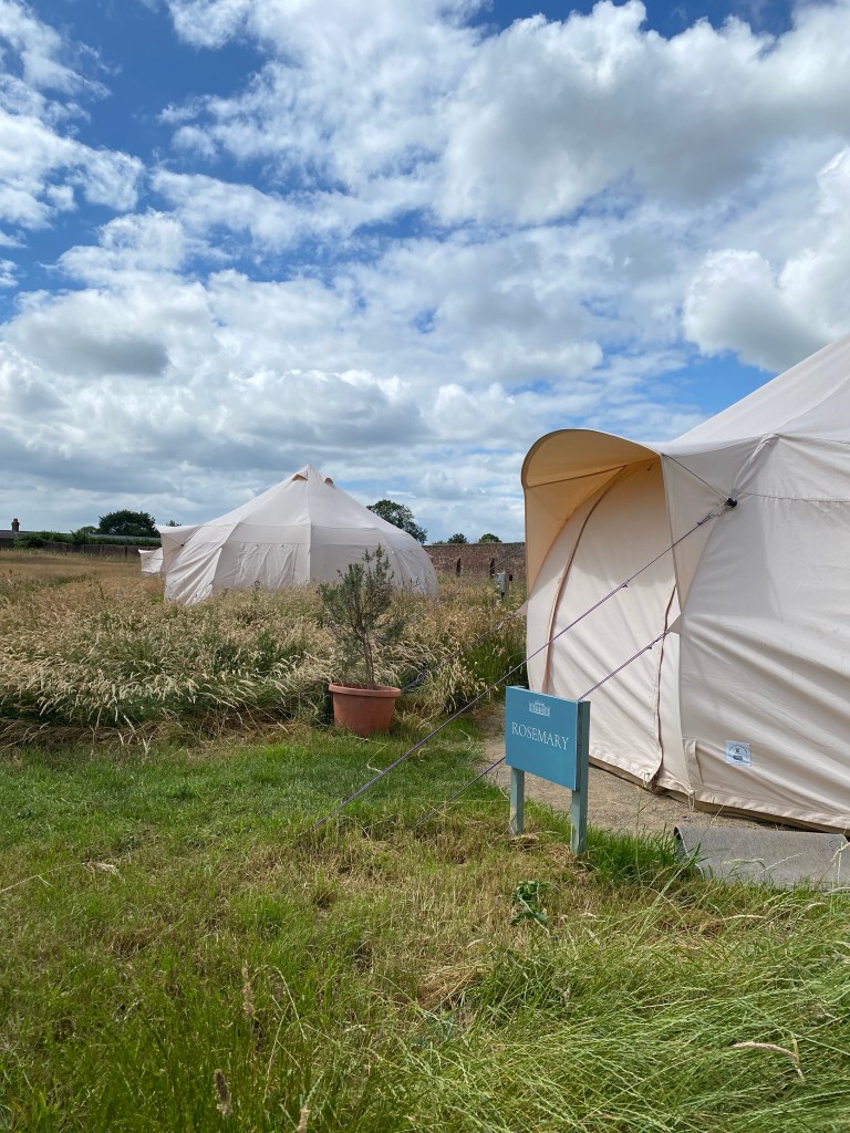 A lovely touch is the luxury tents are named after herbs which are lovingly planted in pots outside each door, we went along past each of the bell tents and smelled every herb!